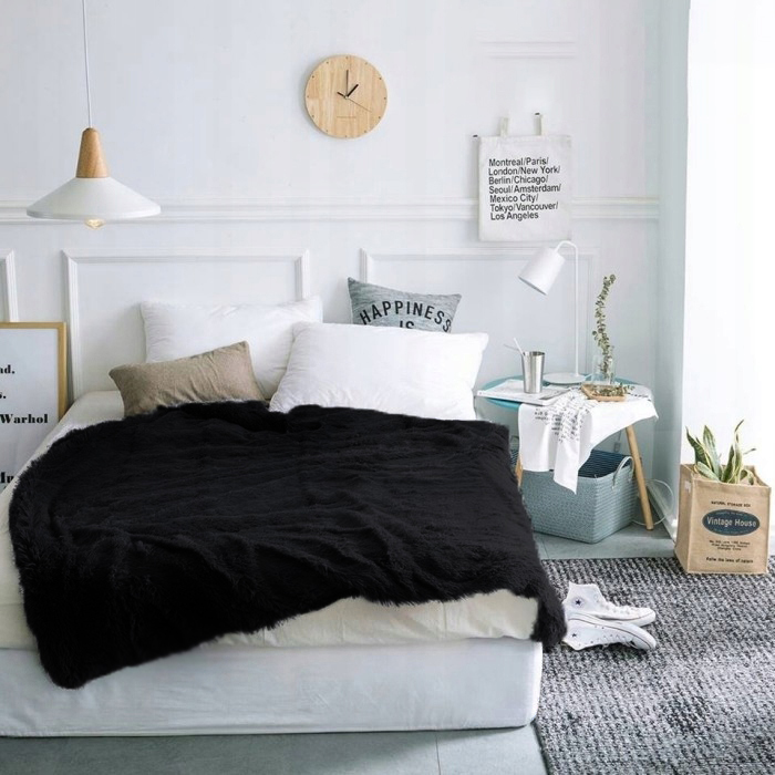 MANTA PELOSA PELUCHE CUBRECAMA 150 x 200 Negro