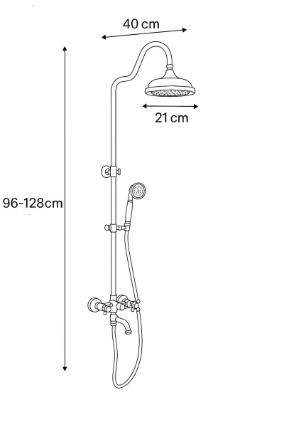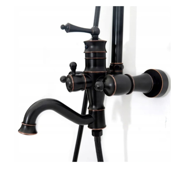 Conjunto de ducha en versión Retro que se caracteriza por la más alta calidad de producción. La grifería está hecha de latón recubierto con una capa de oro viejo. Esto resalta su hermoso aspecto y aumenta su resistencia a factores externos. El cartucho cerámico garantiza un funcionamiento sin fallos durante mucho tiempo. La ducha de lluvia tiene la capacidad de ajustarse en cualquier plano, proporcionando agua de manera eficiente y muy cómoda. La salida para la ducha y la alcachofa de ducha incluida en el conjunto amplían las posibilidades de esta grifería de ducha. El producto viene equipado con un conjunto completo para su instalación.