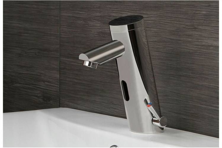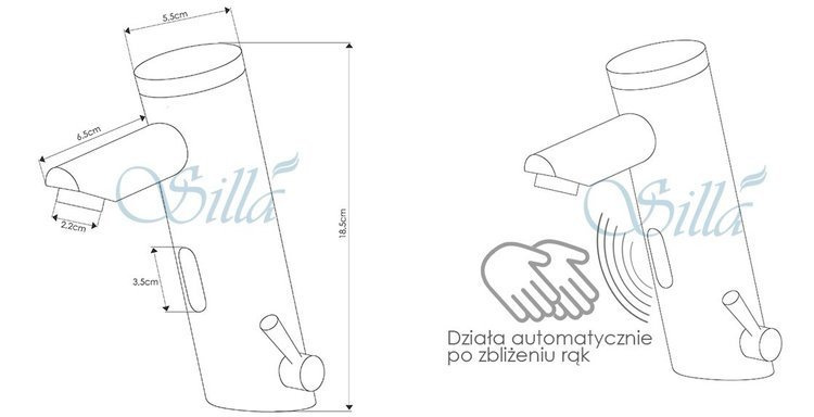 Grifo de lavabo sin contacto con sensor de la marca Silla se combinará perfectamente con lavabos de cerámica y aquellos hechos de conglomerado. El conjunto incluye todos los elementos necesarios para la instalación: mangueras de conexión y conjunto de montaje.