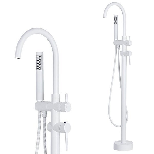 Este grifo de pie muy elegante está fabricado con materiales de la más alta calidad, como corresponde a un producto de clase Premium. Se presenta de manera muy elegante, pero también destaca por su excelente durabilidad, gracias a los materiales perfectamente seleccionados. El latón resistente está protegido contra arañazos por una duradera capa de esmalte blanco, mientras que el cartucho es cerámico.