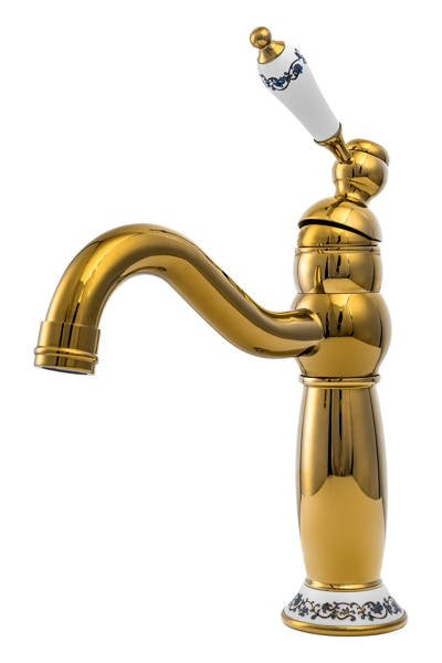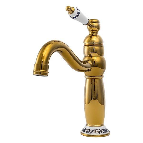 GRIFO DE LAVABO PALOMA DE PIE BAJO RETRO S-1109 DORADO