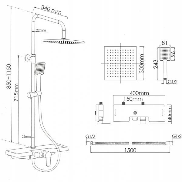 CONJUNTO DE DUCHA EXTERIOR Y-3001 NEGRO