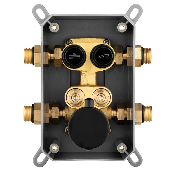 Conjunto de ducha empotrado en versión Premium que se caracteriza por la más alta calidad de producción. La grifería está hecha de latón y todo el conjunto está recubierto de un acabado mate negro. El cartucho cerámico garantiza un funcionamiento sin fallos durante mucho tiempo. La grifería con rociador de lluvia está diseñada en un estilo moderno que evoca las últimas tendencias mundiales en decoración de interiores. Es una combinación perfecta de una forma elegante y estilizada con alta calidad de fabricación y simplicidad de uso.