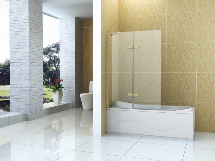 BIOMBO DE BAÑERA GARETT DE 2 HOJAS 120X150 FIJO DORADO CEPILLADO