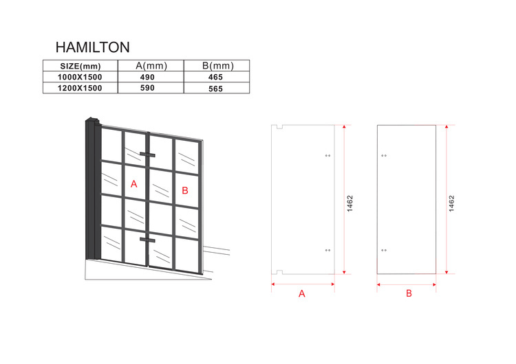 MAMPARA DE BAÑO HAMILTON DE 2 HOJAS 120X150 FIJA NEGRA