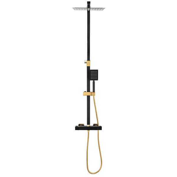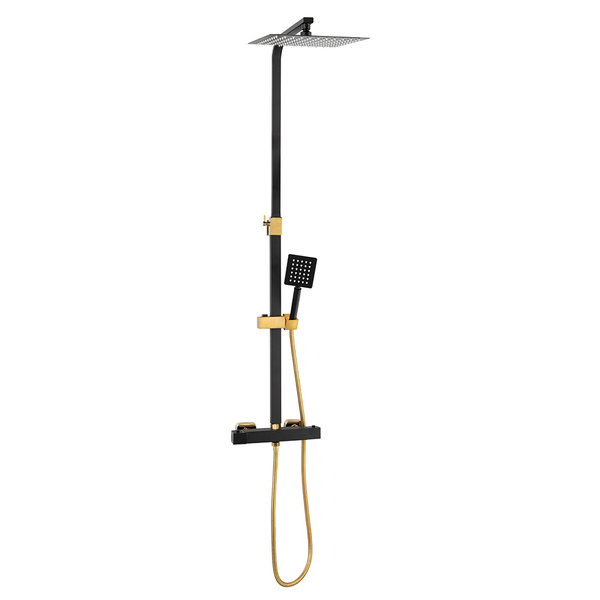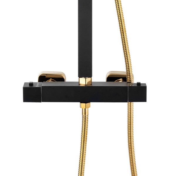 CONJUNTO DE DUCHA EXTERIOR CON TERMOSTATO S-1164BG NEGRO/DORADO