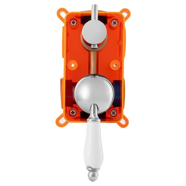 Conjunto de ducha empotrado en versión Premium que se caracteriza por la más alta calidad de fabricación. La grifería está hecha de latón y todo el conjunto está acabado en estilo VINTAGE. El cartucho cerámico garantiza un funcionamiento sin fallos durante mucho tiempo. La grifería con rociador de lluvia está diseñada en un estilo moderno que evoca las últimas tendencias mundiales en decoración de interiores. Es una combinación perfecta de una hermosa forma estilizada con alta calidad de fabricación y simplicidad de uso.