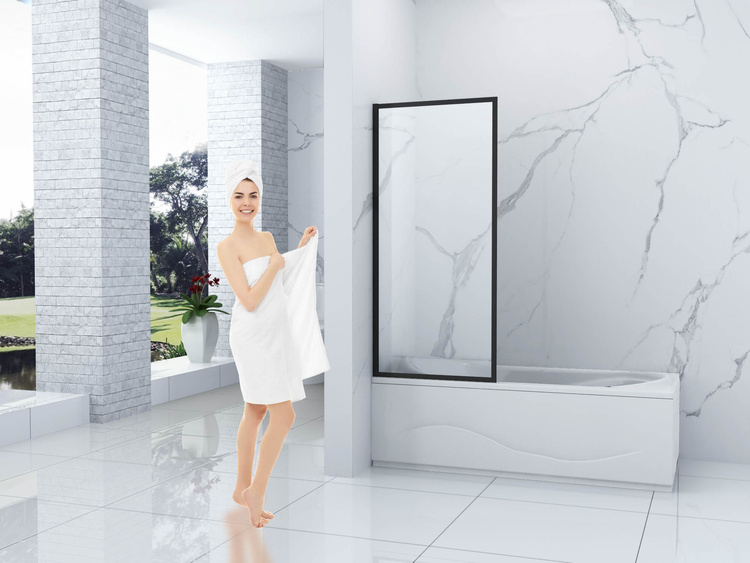 Eficaz protección contra salpicaduras de agua durante el baño. La mampara está equipada con juntas que se adhieren perfectamente a la superficie del vidrio y a los bordes de la bañera.