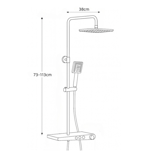 El set incluye un gran rociador rectangular, una teleducha moderna y una repisa funcional para cosméticos, integrada en el panel de control. El cartucho cerámico y el sistema de regulación intuitivo aseguran un manejo cómodo y un uso fiable durante años.