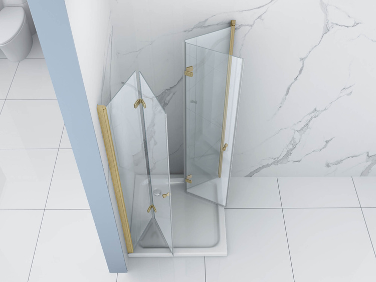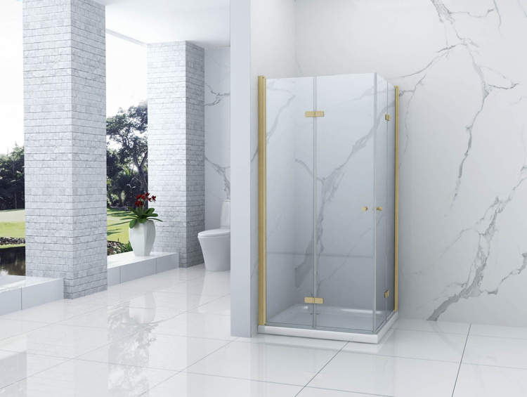 CABINA DE DUCHA BAXLER DORADA CON PLATO SLIM CUADRADA TRANSPARENTE - 80X80X190