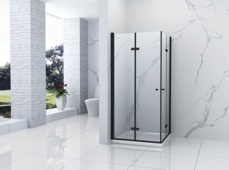 CABINA DE DUCHA BAXLER NEGRA CON PLATO DE DUCHA SLIM CUADRADA TRANSPARENTE - 90X90X190