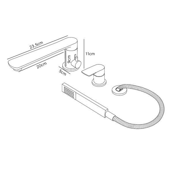 Fabricado en latón de alta calidad, garantiza fiabilidad durante muchos años. El cartucho cerámico permite un control suave de la temperatura, mientras que el aireador integrado reduce el consumo de agua hasta en un 50 %, ofreciendo al mismo tiempo la máxima comodidad. El sistema de 3 orificios facilita la instalación e incluye un caño de 23,5 cm y una ducha de mano funcional.
