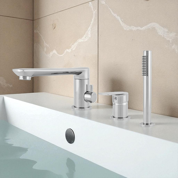 El grifo de bañera de 3 orificios en cromo es la combinación perfecta de estilo moderno, comodidad de uso diario y calidad fiable. Su acabado brillante refleja la luz de manera espectacular, aportando un carácter lujoso al baño.