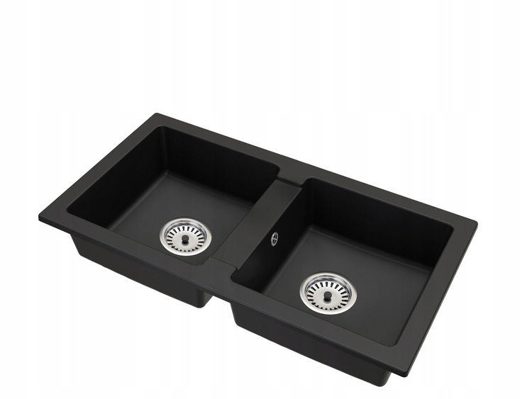 Fregadero de granito de doble cubeta Borys negro – practicidad, durabilidad y elegancia para el día a día.