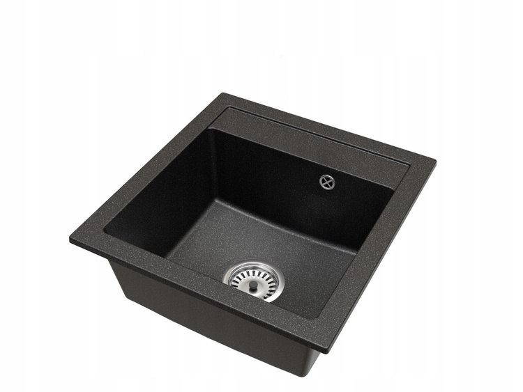 Fregadero Cocina Negro Jaspeado 52x49cm, Fregadero Granito 1 Seno + Sifón