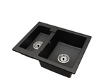 Fregadero Cocina Negro 80x50cm, Fregadero Granito 2 Senos + Sifón