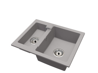 Fregadero Cocina Gris 80x50cm, Fregadero Granito 2 Senos + Sifón